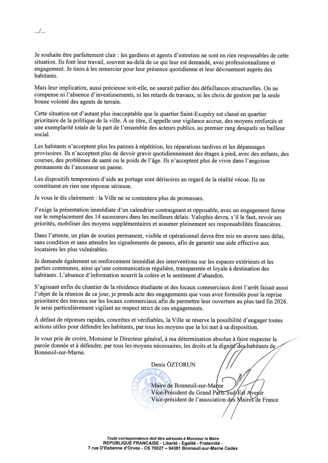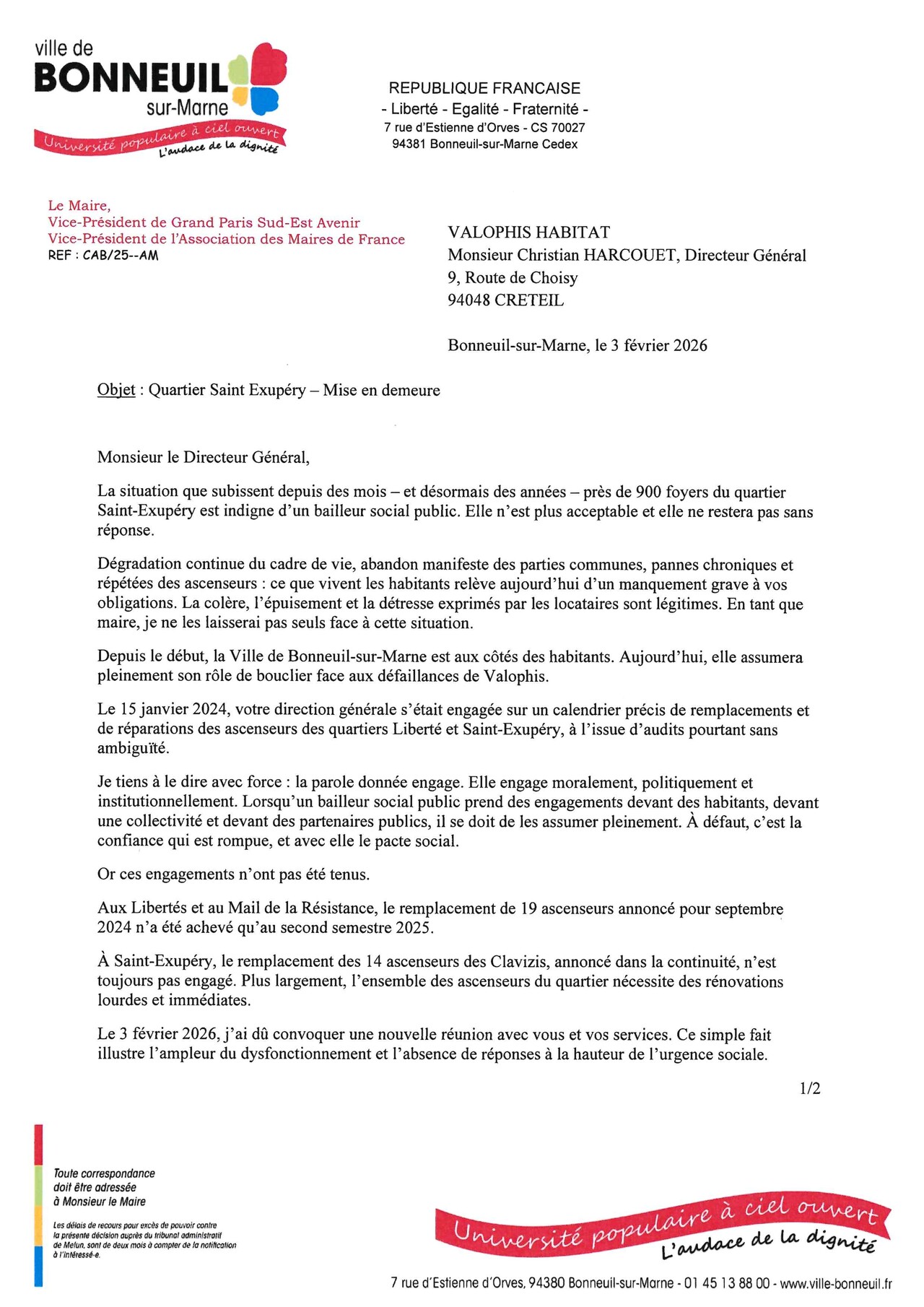 Lettre adressée à monsieur Christian HARCOUET, Directeur Général chez groupe Valophis : Retour aux actualités