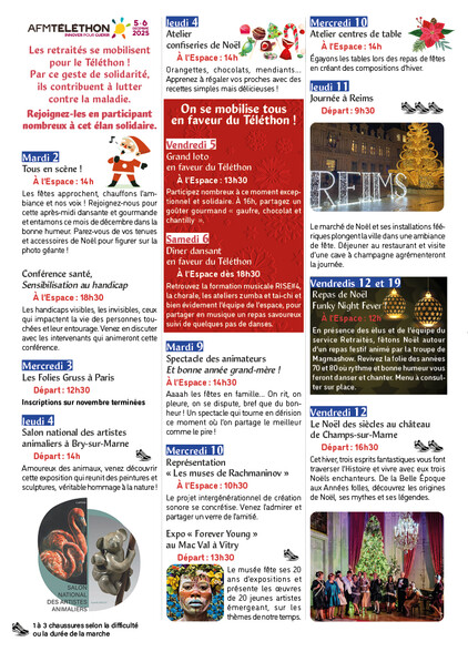 Un programme d’activités est envoyé chaque mois à tous les retraités.