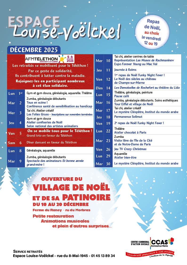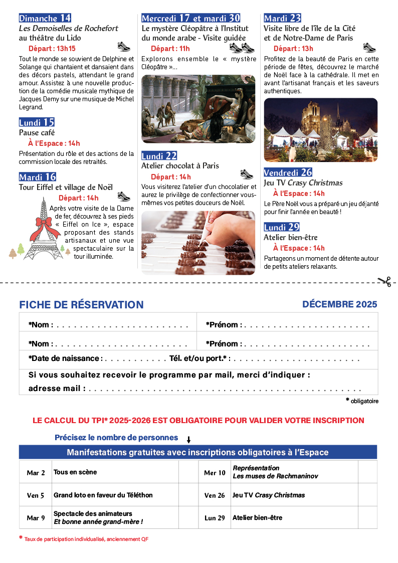 Des spectacles, sorties, musées, animations, conférences santé, après-midi jeux sont proposés.