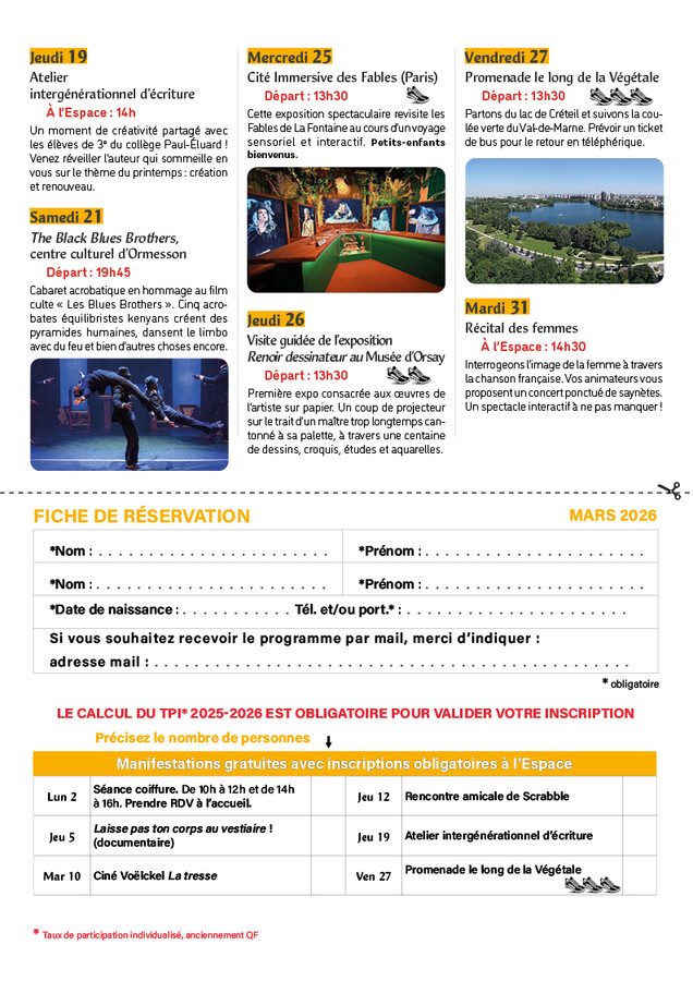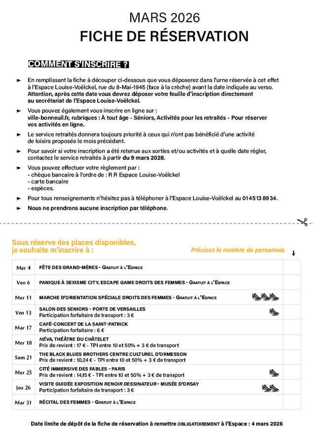 DATE LIMITE D’ENVOI POUR LES ACTIVITÉS DE MARS : MERCREDI 4 MARS 2026