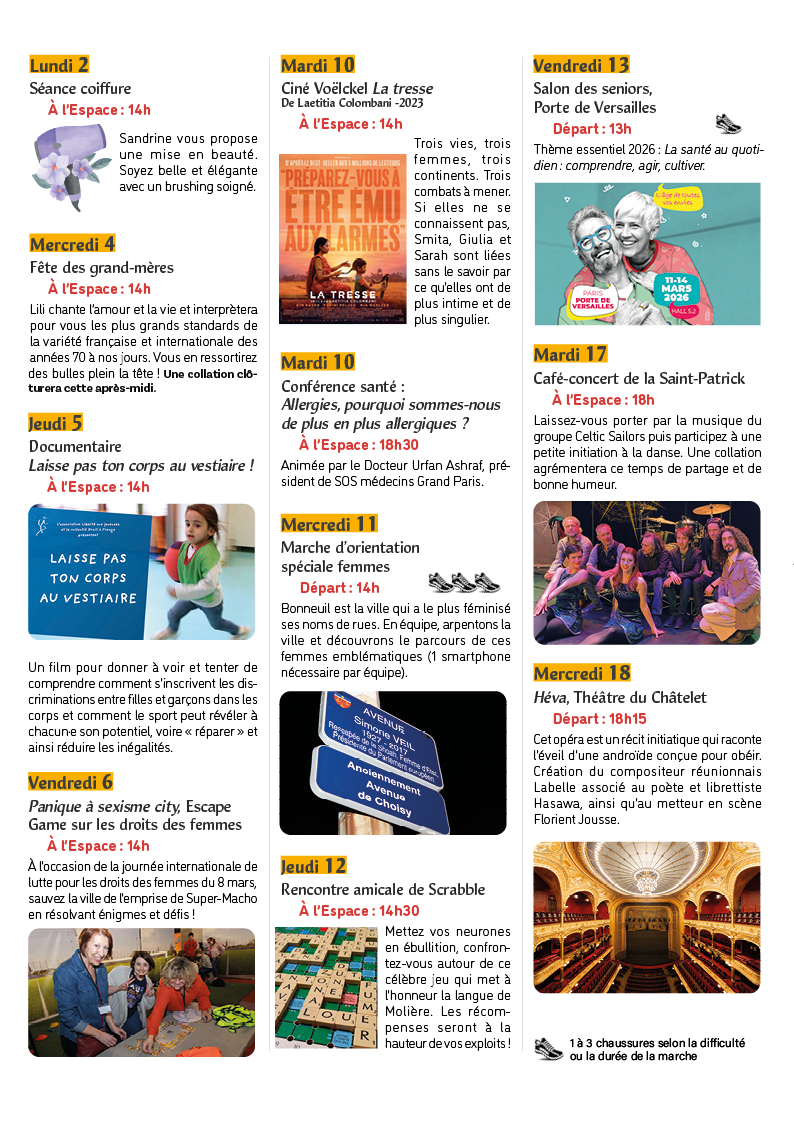 Des spectacles, sorties, musées, animations, conférences santé, après-midi jeux sont proposés.